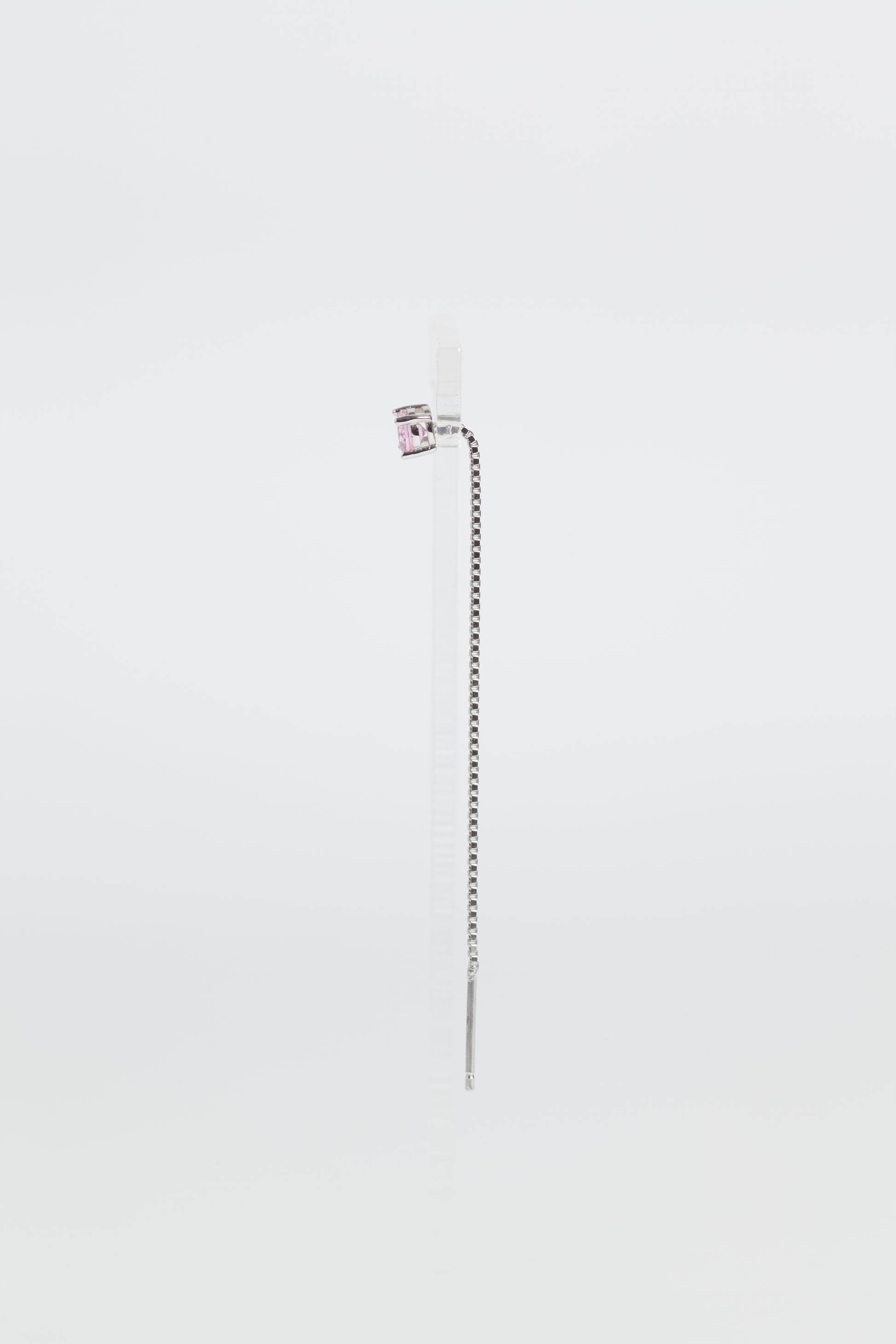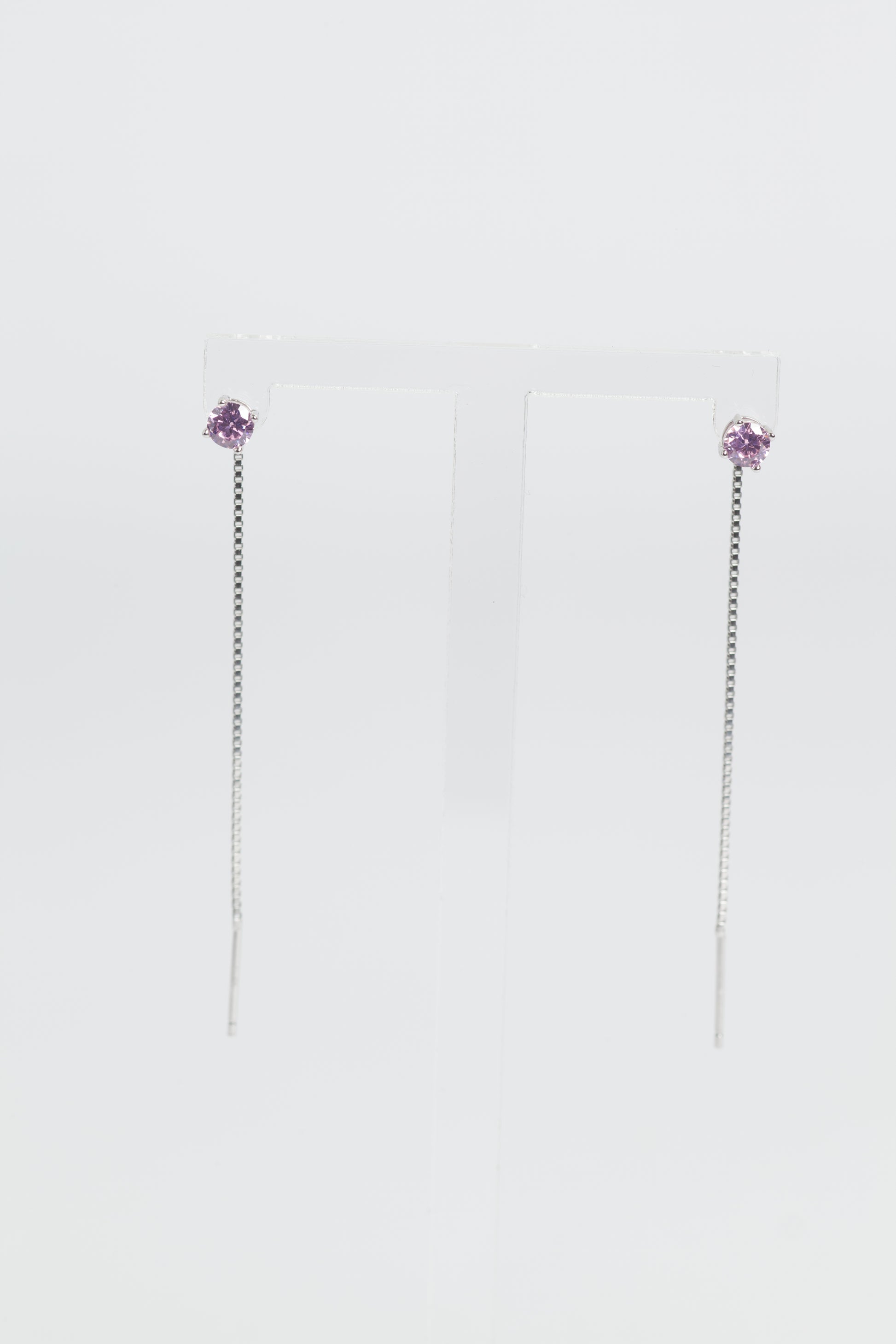 Orecchino in argento 925 rodiato, stile pull through, pietra rotonda 4mm, lunghezza 5cm