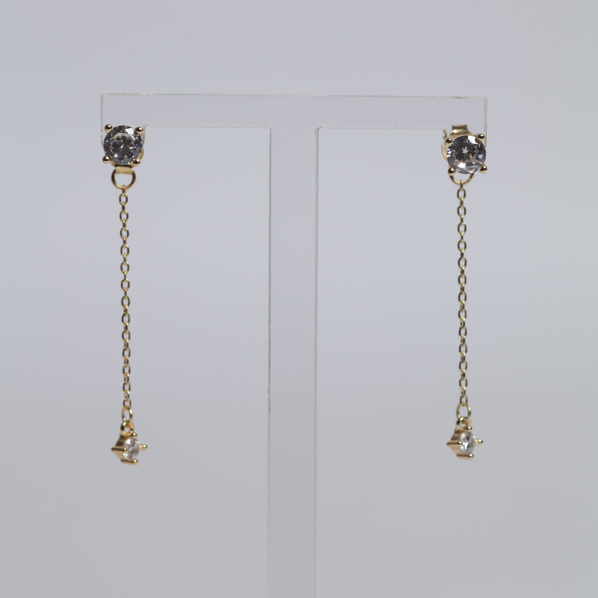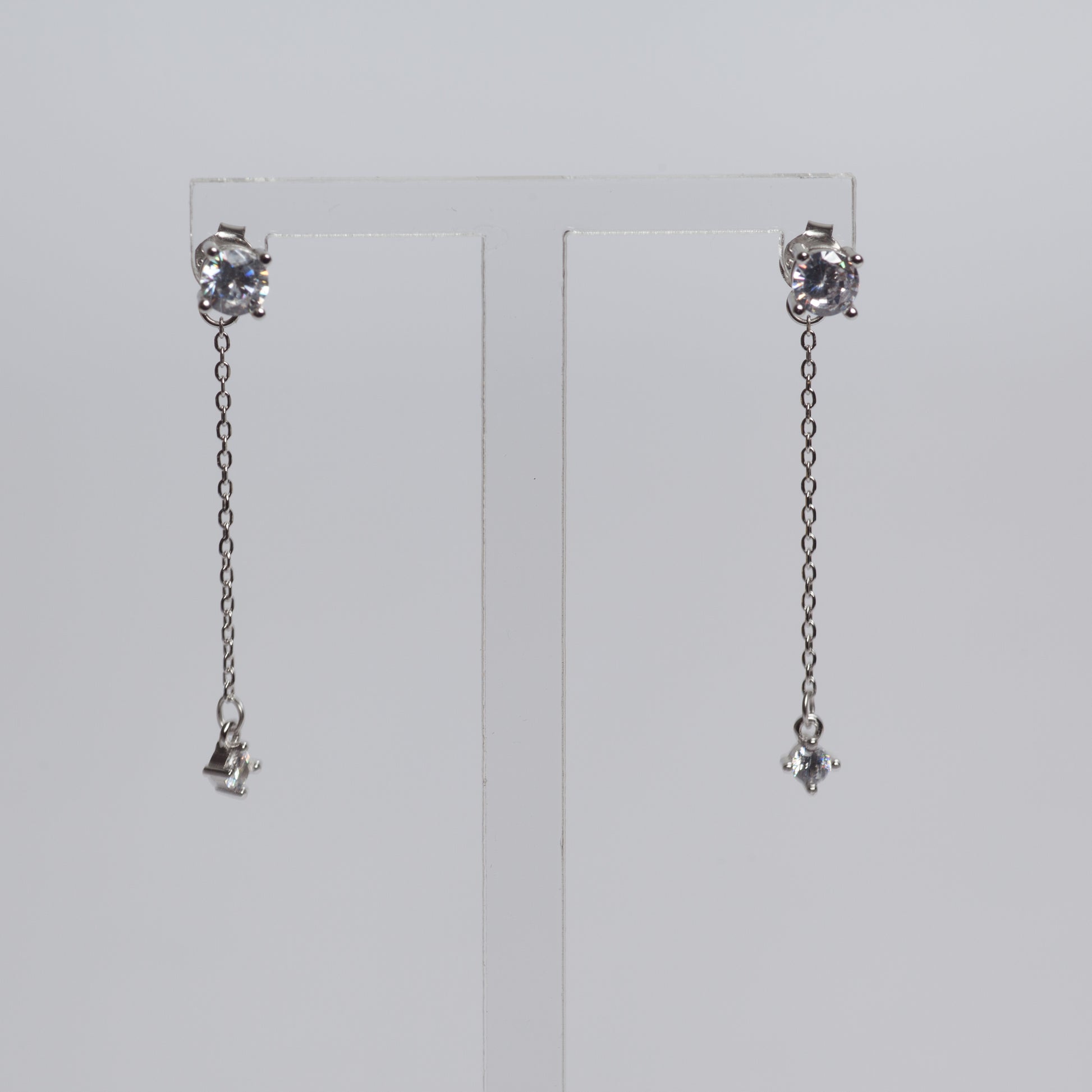 Orecchini punto luce in Argento 925 , con catenina e pendente con pietra su chiusura a farfalla posteriore. Pietre in zirconia cubica bianca da 5 mm e 3 mm.